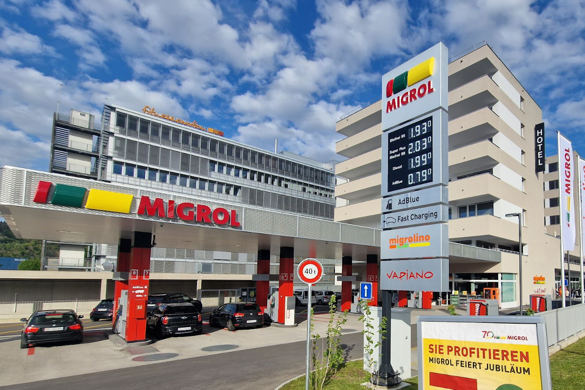 Die Migrol Tankstelle an der Industriestrasse in Spreitenbach wurde überfallen. (Bildquelle: P&F Immobilien AG)