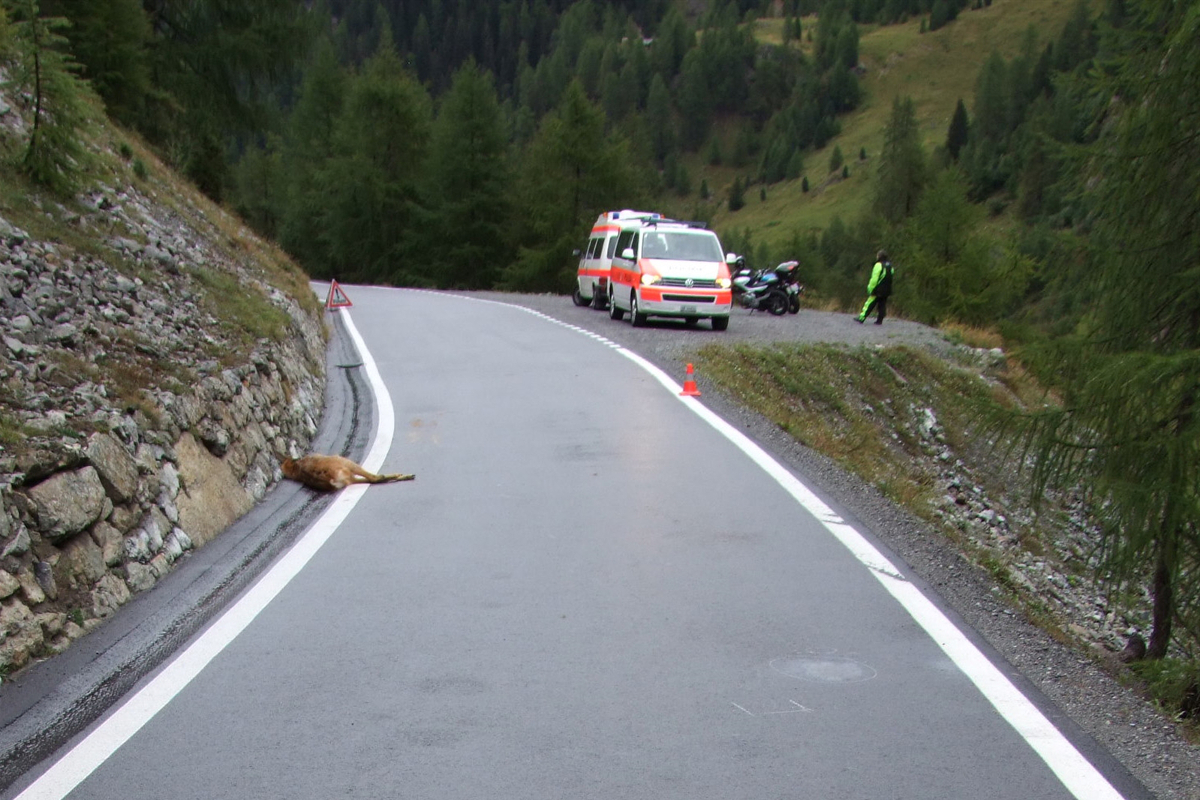 Am Montagvormittag ist es am Umbrailpass GR zu einer Kollision zwischen einem Motorrad und einem Reh gekommen. Der Motorradfahrer wurde verletzt und das Reh getötet.