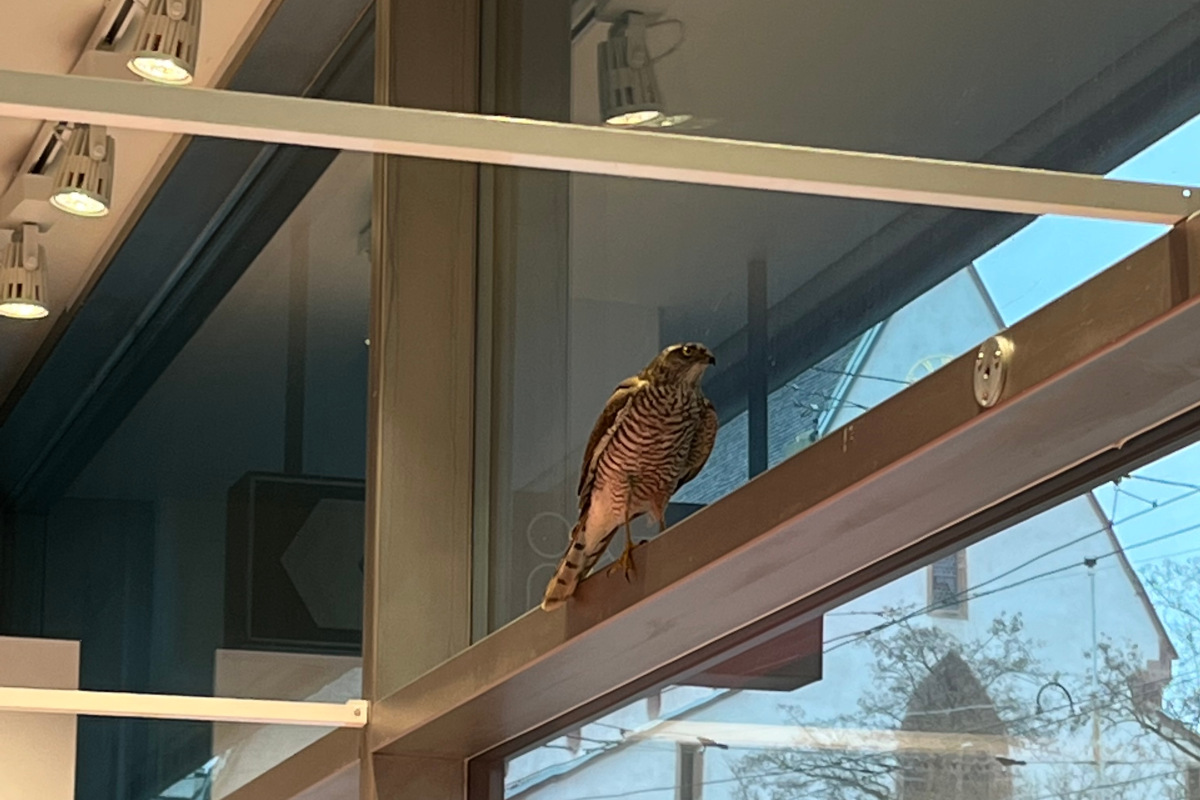 Durch die Berufsfeuerwehr der Rettung Basel-Stadt konnte ein verängstigter Mäusebussard aus einem Schuhgeschäft in die Freiheit entlassen werden.