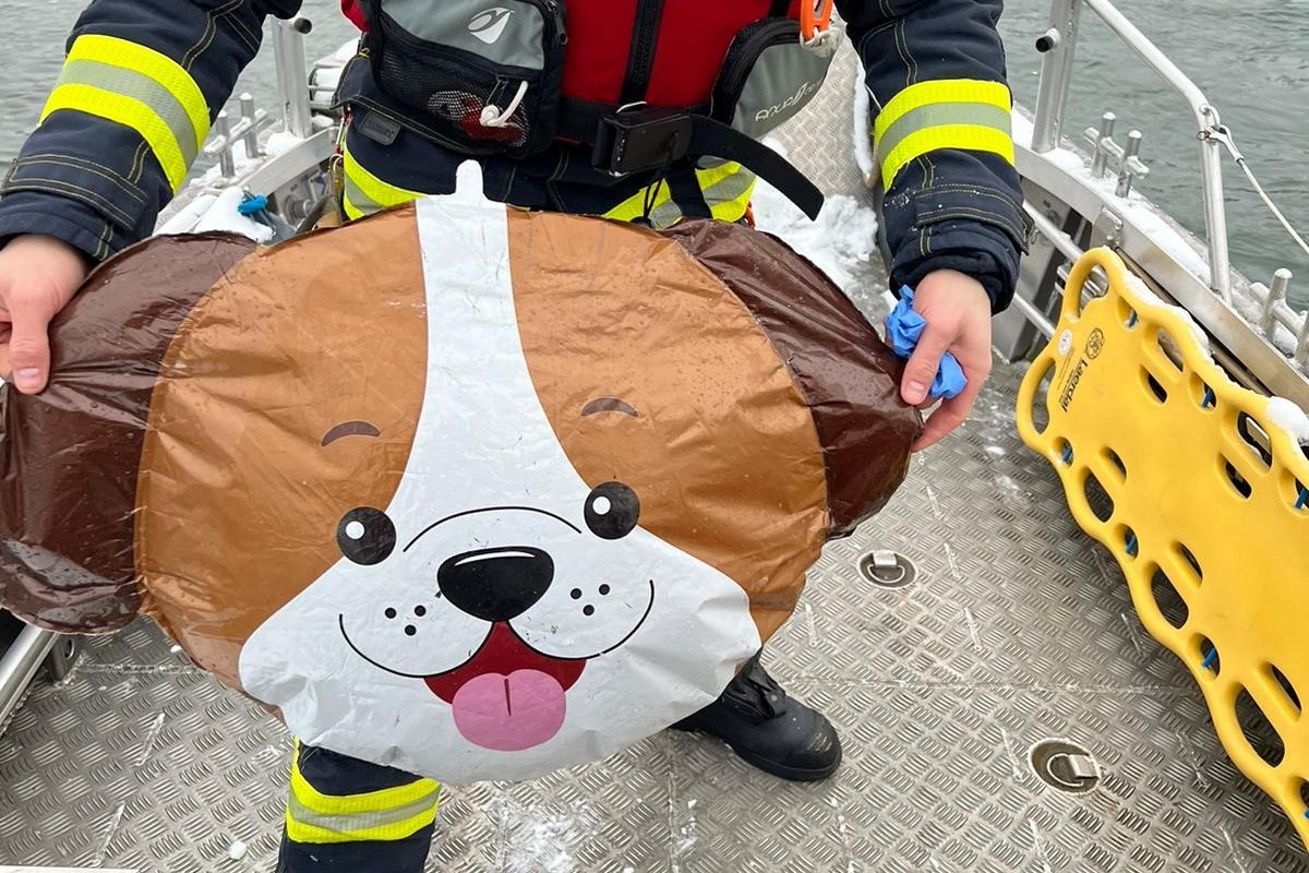Rund 20 Minuten nach der Alarmierung konnte eine Bootspatrouille der Berufsfeuerwehr Entwarnung geben, nachdem die Einsatzkräfte das «Opfer» aus dem kalten Wasser geborgen hatten. Es stellte sich heraus, dass es sich bei der vermeintlichen Person und einen Luftballon in Bärchenform gehandelt hatte. Von der Besitzerin oder dem Besitzer fehlt aber noch jegliche Spur.