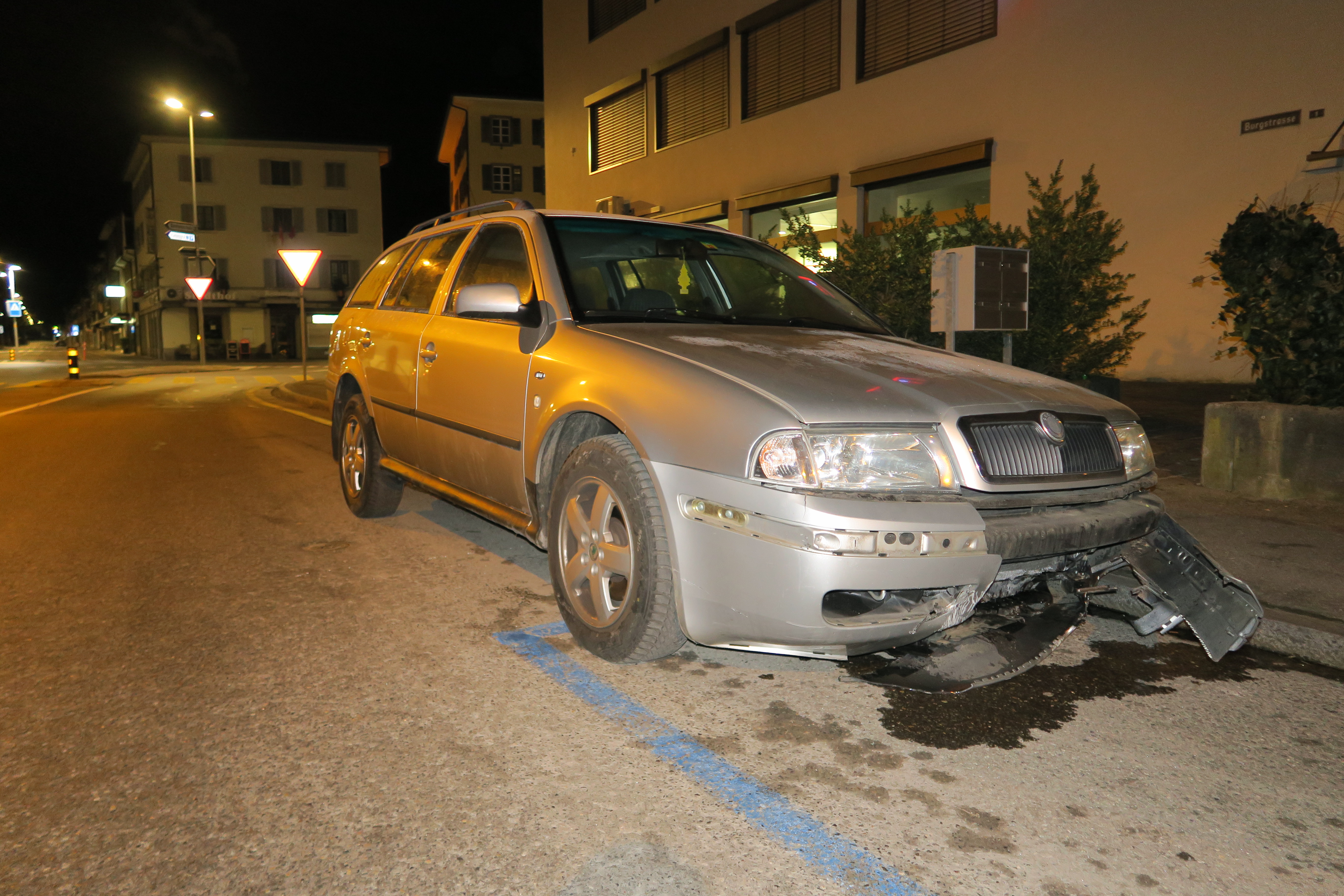 Eine zunächst unbekannte Lenkerschaft fuhr mit einem Personenwagen in allgemeine Richtung Norden. Bei der Verzweigung Bahnhofstrasse/Burgstrasse verlor diese die Herrschaft über das Fahrzeug, überquerte geradewegs eine Verkehrsinsel sowie das linksseitige Trottoir und prallte in eine Betonmauer. Hernach wurde der Wagen auf der Strasse abgestellt und die Lenkerschaft entfernte sich von der Unfallörtlichkeit. Im Zuge der polizeilichen Fahndung konnte der 31jährige Lenker sodann am Bahnhof Glarus ausfindig gemacht werden.