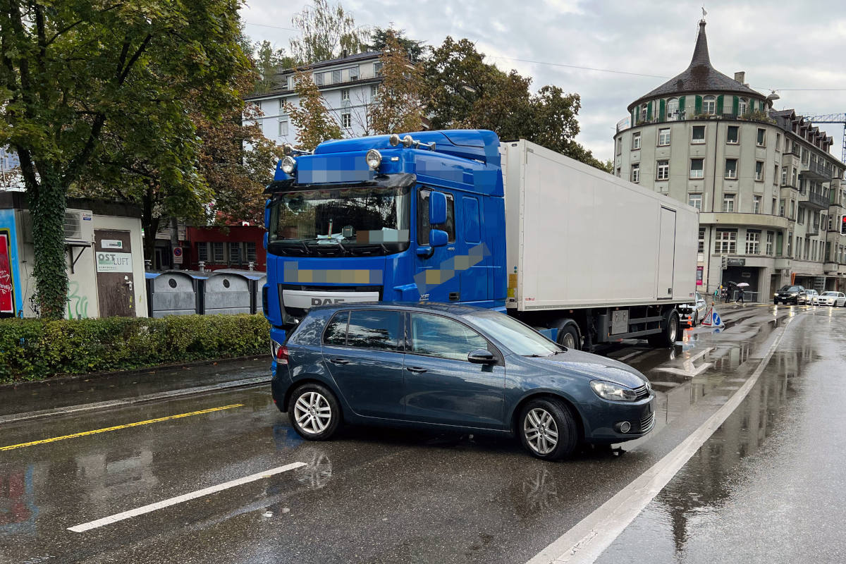 Am Samstagmittag (17.09.2022) ereignete sich beim Unterer Graben ein Verkehrsunfall. Es gab keine Verletzten, jedoch entstand Sachschaden an einem Sattelschlepper und an einem Auto.