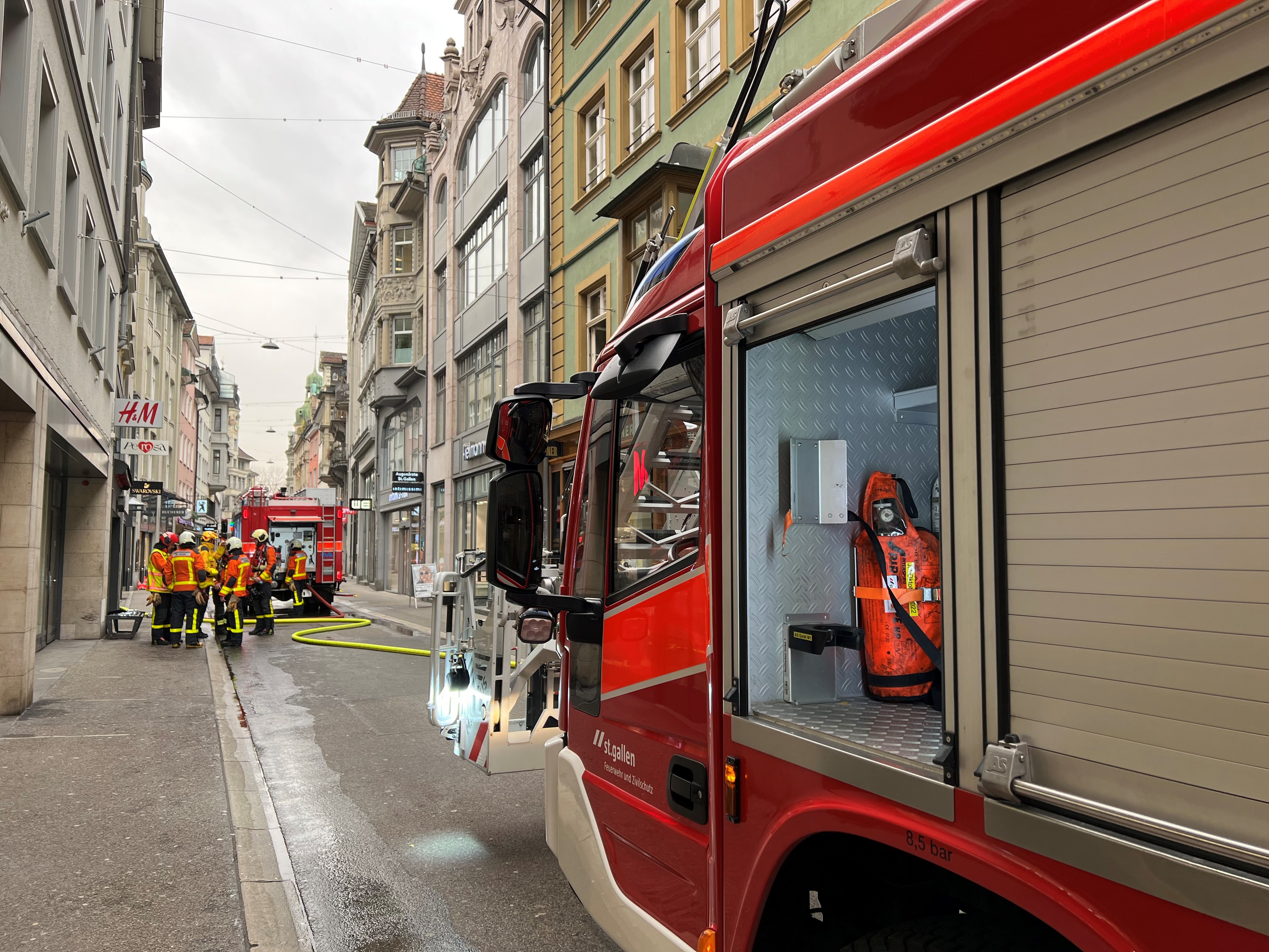 Während den Löscharbeiten wurde die Multergasse abgesperrt. Es standen mehrere Patrouillen der Stadt- und der Kantonspolizei St.Gallen im Einsatz. Die Feuerwehr war mit rund 20 Angehörigen und mehreren Fahrzeugen an Ort. Vier Rettungswagen, ein Notarzt und zwei Sanitätsführungskräfte koordinierten die Betreuung der Verletzen. Die Brandursache wird durch das Kompetenzzentrum Forensik der Kantonspolizei St.Gallen abgeklärt.