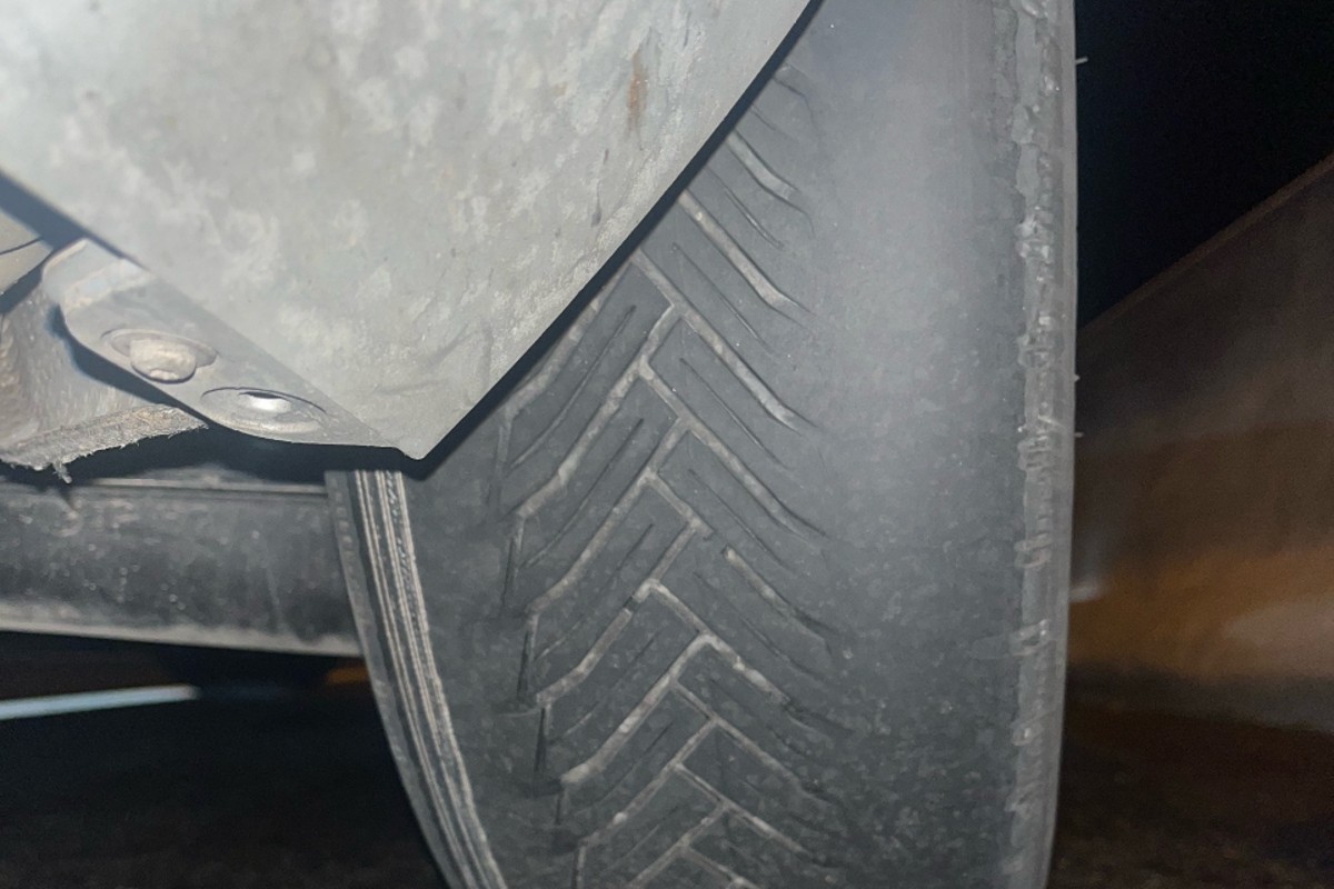 Der Wagen hatte bis auf die Karkassen abgefahrene Hinterräder. (Bildquelle: Kantonspolizei St. Gallen)