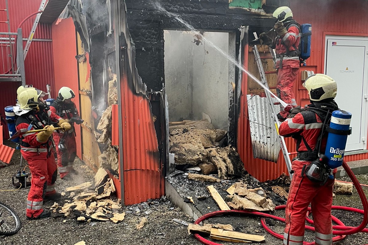 Am frühen Mittwochabend gingen bei der Einsatzleitzentrale von Schutz & Rettung Zürich (SRZ) mehrere Notrufe wegen eines Brandes in einer Asylunterkunft am Aubruggweg in Zürich ein. Die Einsatzkräfte waren rasch vor Ort und sorgten für die vollständige Evakuation der Bewohner. Gleichzeitig begann die Berufsfeuerwehr mit Unterstützung der Milizfeuerwehr Kp Nord mit den Löscharbeiten, die sich als aufwendig erwiesen, weil sich das Isoliermaterial immer wieder entzündete. Um weitere Mottbrände zu unterbinden, mussten sämtliche Wände des Einstellraums, in welchem der Brand ausgebrochen war, eingerissen werden. Die Nachlöscharbeiten dauerten entsprechend noch weitere drei Stunden. Die genaue Brandursache ist noch Gegenstand der laufenden Ermittlungen, die durch Detektive der Stadtpolizei Zürich geführt werden.
