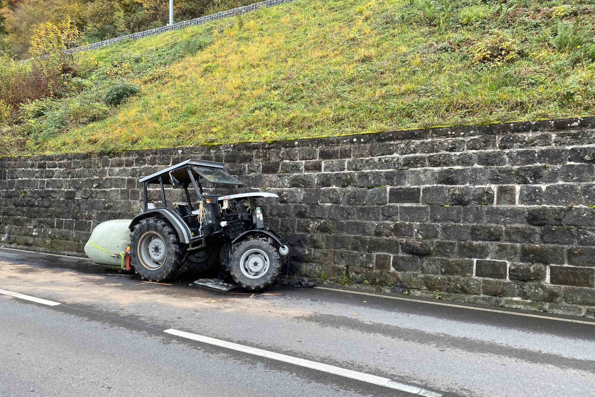 Am Dienstagmorgen (15. November 2022) ist eine Traktorfahrerin in eine Stützmauer geprallt. Die 30-Jährige hatte einen Schutzengel und blieb unverletzt.