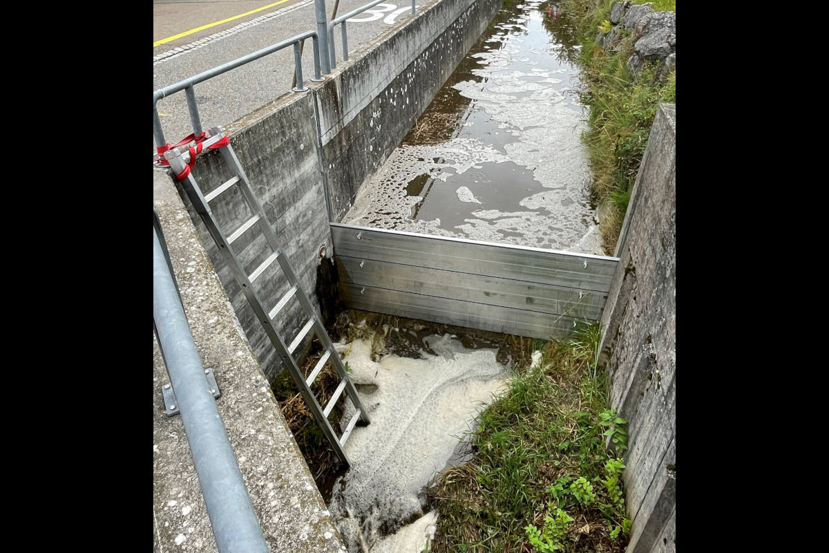 Gegen 16.15 Uhr ging bei der Kantonalen Notrufzentrale die Meldung über eine Gewässerverschmutzung ein. Aus noch ungeklärten Gründen flossen rund 100 Kubikmeter Jauche von einem Landwirtschaftsbetrieb in einen Meteorschacht, welcher in das Chalchofenbächli führt. Von dort floss die Jauche über weitere Bäche in Richtung Untersee.