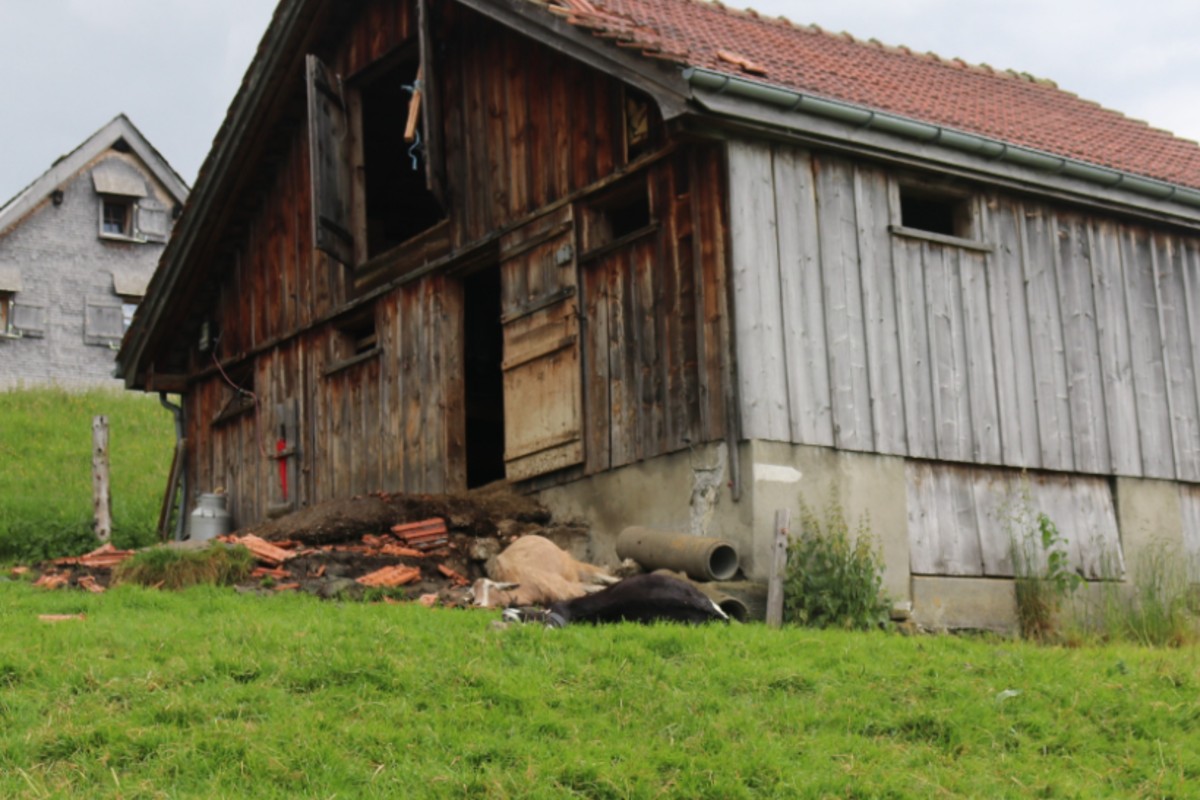 Am Samstagvesper (27.06.2020) schlug ein Blitz in einen Weidestall an der Egglistrasse in Appenzell Steinegg ein. Dabei verstarben drei Geissen. Am Dach und an der Fassade des Weidestalls entstand Sachschaden.