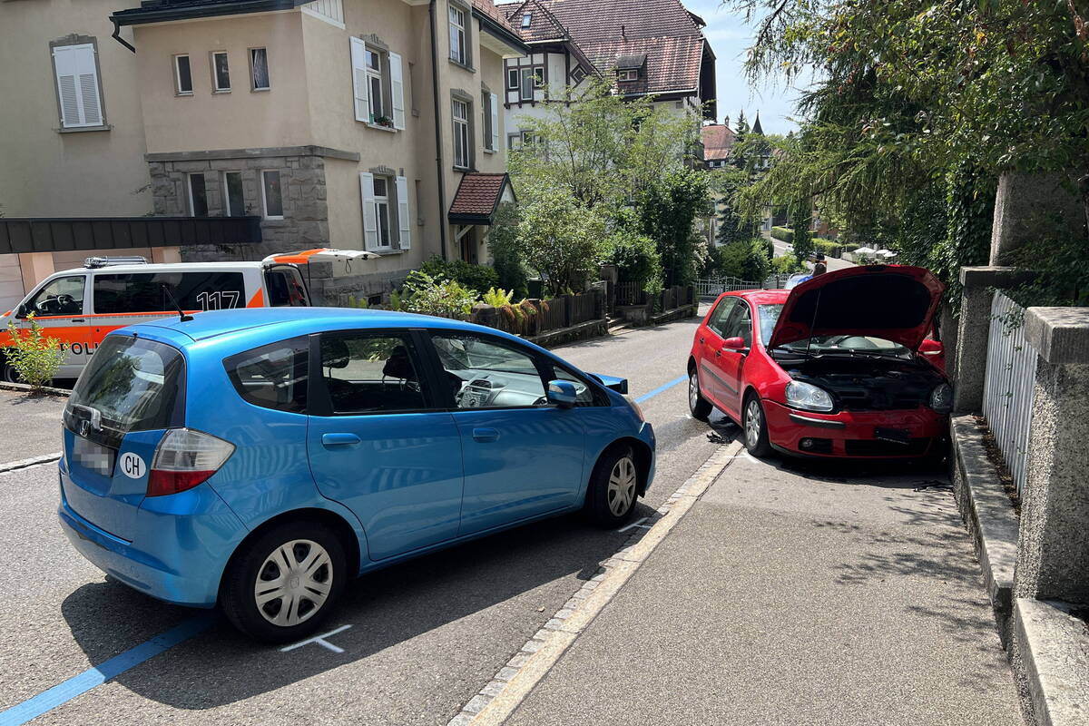 Anschliessend geriet das Auto des 93-Jährigen einige Meter weiter über das linksseitige Trottoir und prallte mit der rechten Fahrzeugecke frontal in ein weiteres parkiertes Auto. Dieses wurde durch die Wucht auf die Fahrbahn geschoben. Schliesslich prallte der 93-jährige Mann mit seinem Auto gegen eine Mauer. Dabei wurde er leicht verletzt. Es entstand hoher Sachschaden.