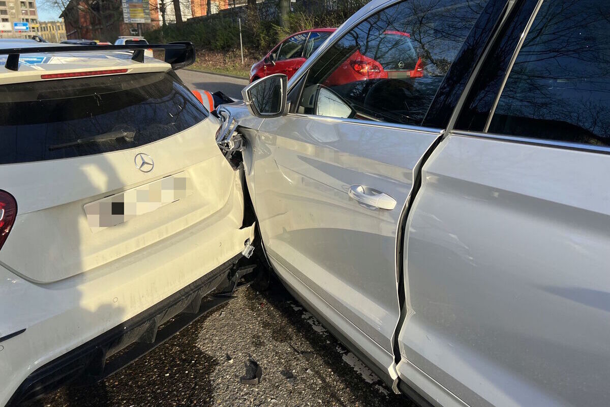 Am Dienstagabend gegen 17.30 Uhr fuhr ein 39-jähriger Mann mit seinem Personenwagen auf der Rosenbergstrasse stadteinwärts. Auf Höhe der Autobahnausfahrt Kreuzbleiche beabsichtige er einen Spurwechsel vorzunehmen. Dabei kam es zu einer Kollision mit einem Personenwagen, welcher auf der Spur in Richtung Rosenbergstrasse stand.