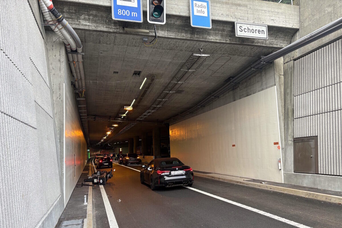 Kurz vor 8 Uhr ereignete sich im Schorentunnel West einen Auffahrunfall zwischen einem Auto und einem Motorrad. Beim Unfall wurde niemand verletzt. Durch beide Unfälle entstand im morgendlichen Pendlerverkehr langer Rückstau.