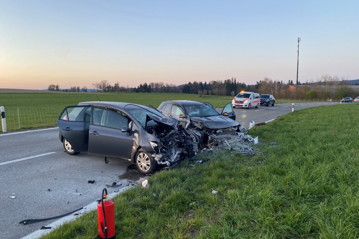 Beim Unfall wurde die 43-jährige Beifahrerin des 50-Jährigen mittelschwer verletzt. Sie musste nach der Erstversorgung durch den Rettungsdienst von der Rega ins Spital geflogen werden. Der 50-jährige Autofahrer und seine vierjährige Tochter wurden leicht verletzt. Der 44-Jährige verletzte sich ebenfalls leicht, seine beiden Kinder im Alter von 15 und 12 Jahren mittelschwer. Die fünf Personen mussten durch den Rettungsdienst ins Spital gebracht werden. Es entstand Sachschaden von mehreren zehntausend Franken.