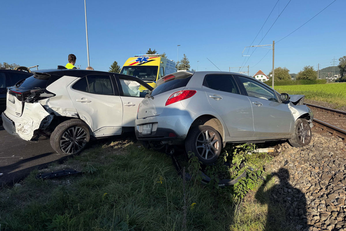 Durch den Aufprall schleuderte es beide Fahrzeuge an den Rand der Fahrbahn und in die Nähe der Gleisanlage. Nebst der Strassensperrung musste daher auch der Zugsverkehr unterbrochen werden.