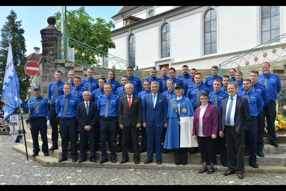 Die frisch vereidigten Polizistinnen und Polizisten absolvierten die Lehrgänge 2016-2 und 2017-1 der Interkantonalen Polizeischule in Hitzkirch und schlossen die Grundausbildung mit der eidgenössischen Berufsprüfung ab.