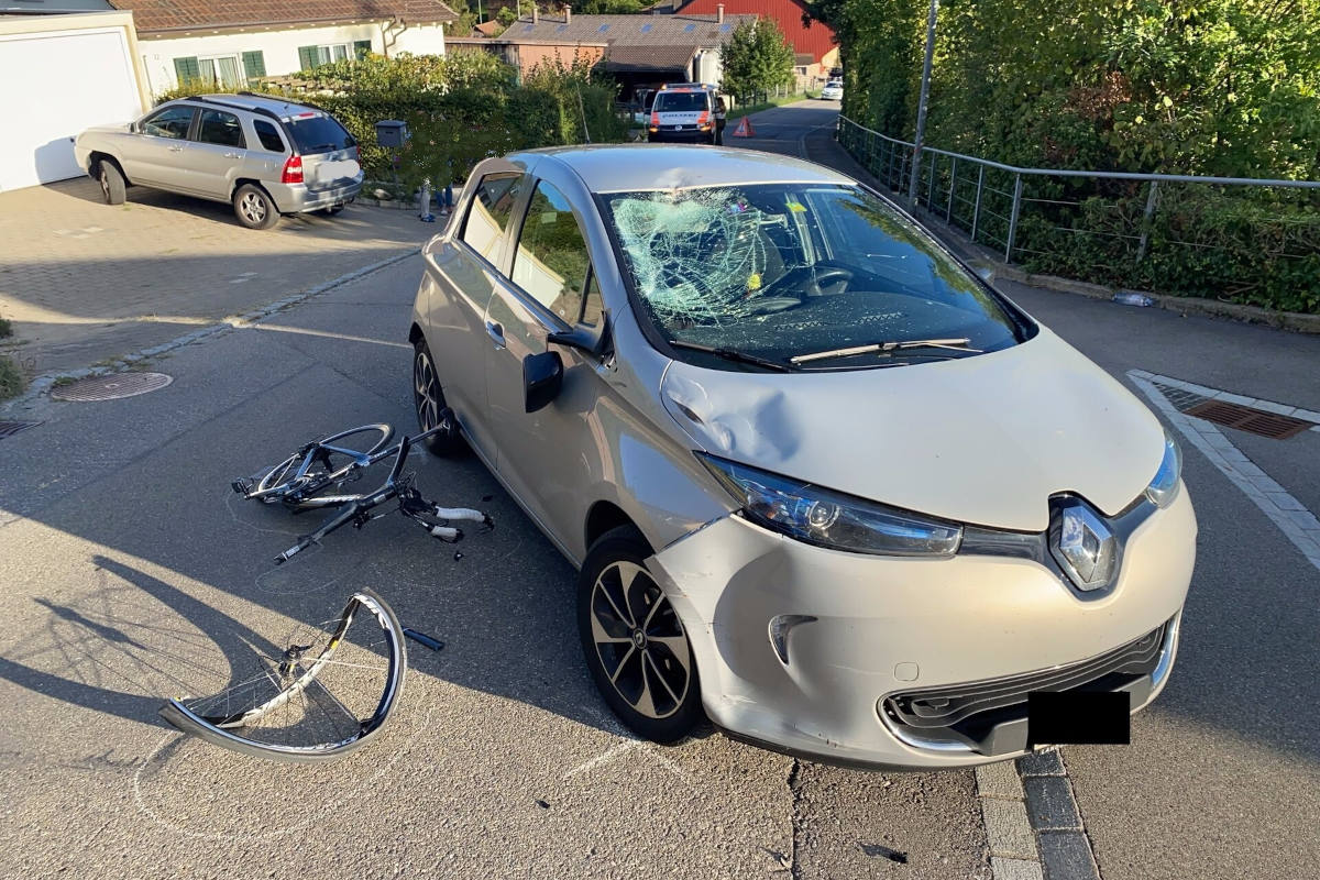 Um 17.30 Uhr am Sonntagnachmittag (11.09.2022) fuhr ein 58-jähriger Mann mit einem Velo von Schlatt am Randen (D) her auf der Schlattergasse in Richtung Thayngen. Beim Ortseingang kollidierte er mit dem Velo frontal gegen ein abbiegendes Auto. Der Velofahrer wurde in der Folge an die Windschutzscheibe des Autos und anschliessend vor dem Personenwagen auf den Boden geschleudert.