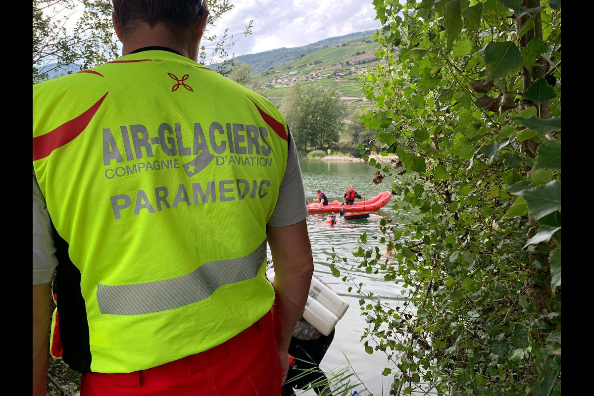 Patrouillen der Kantonspolizei und der Regionalpolizei Sitten/Siders trafen als erste Einsatzkräfte an der Unfallstelle ein, und begaben sich sofort ins Wasser. Bei der Suche standen zwei Helikopter der Rettungsorganisation «AirGlaciers/Maison FXB du Sauvetage», zwei Taucher, Einsatzkräfte der Feuerwehr Siders mit einem Boot, die Feuerwehr Vallon, Rettungssanitäter sowie ein Notarzt im Einsatz.