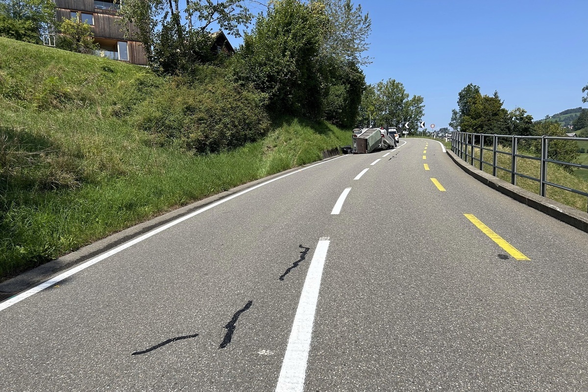 Die Fahrzeugkombination überschlug sich (Bildquelle: Kantonspolizei Appenzell Ausserrhoden)