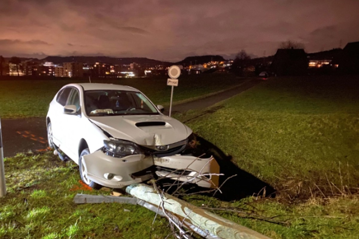 Kurz vor 05:45 Uhr ist es auf der Göblistrasse in der Stadt Zug zu einem Selbstunfall gekommen. Eine Neulenkerin fuhr in Richtung Arbach und kam aufgrund eines Sekundenschlafs links von der Strasse ab. Dabei prallte das Auto heftig in einen Strommast, worauf dieser umknickte. Die 18-jährige Lenkerin erlitt leichte Verletzungen, musste jedoch nicht in ärztliche Obhut übergeben werden. Am Auto entstand Totalschaden.