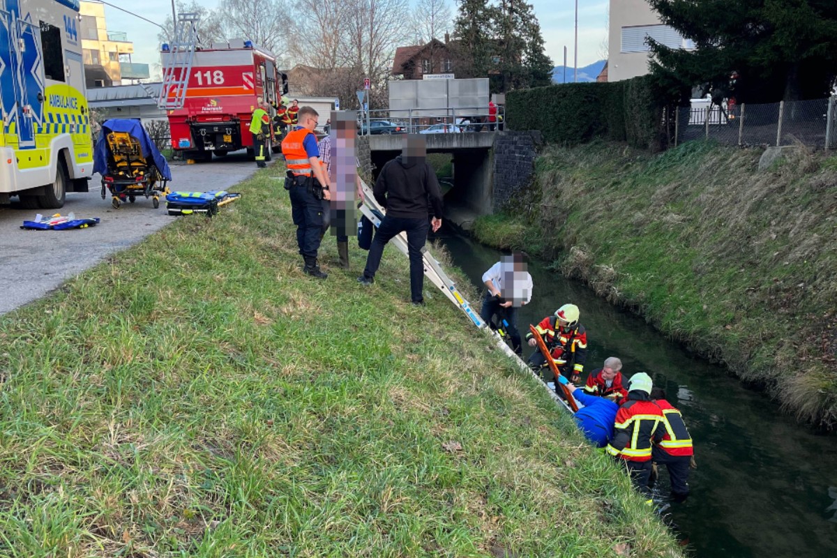 Unfall in Au SG - Mann stürzt wegen Hund in Bach und muss gerettet werden