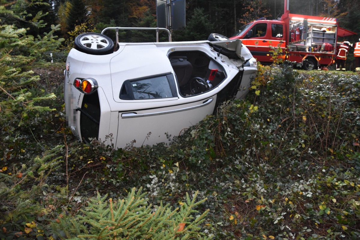der Strasse ab und rutsche die angrenzende Böschung hinunter. Dabei kippte das Auto auf