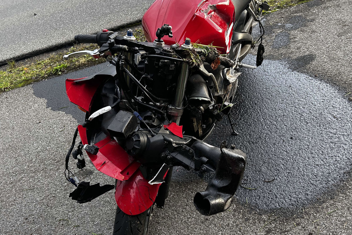 Beim Überholen geriet der 24-Jährige in der Linkskurve zu weit nach links, wodurch sein Motorrad wegrutschte. Er rutschte samt Motorrad mehrere Meter über den Asphalt sowie eine Grünfläche, bevor sie gegen einen Randstein prallten. Das Motorrad kam auf dem Radweg zum Stillstand.