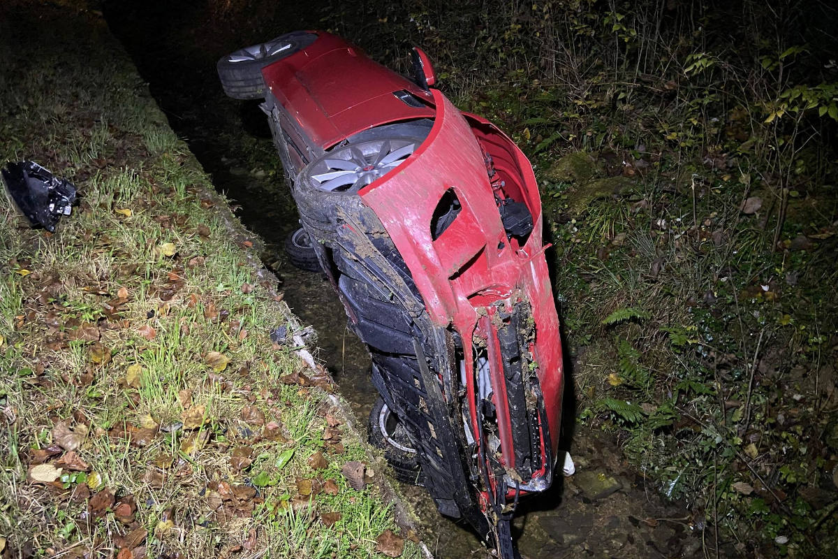 Auto landet im Bach in Gelterkinden (Bildquelle: Kantonspolizei Basel-Land)