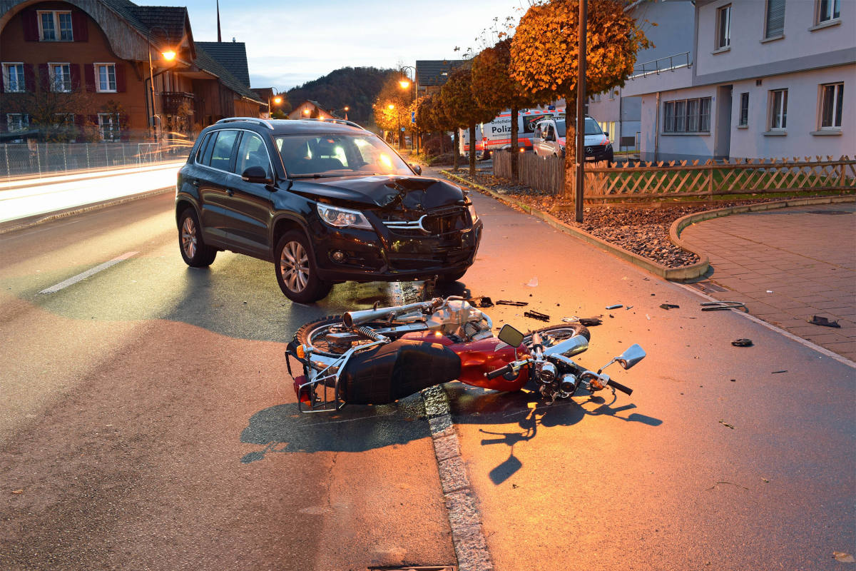 Bei einer Kollision zwischen einem Auto und einem Motorrad wurde der Motorradfahrer erheblich verletzt und musste ins Spital überführt werden. Es entstand ein Sachschaden in der Höhe von rund 15'000 Franken.