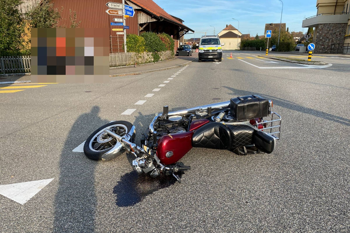 Der Unfall ereignete sich am Sonntag, 25. Oktober 2020, kurz nach 15 Uhr, in Leibstadt. Ein 73-jähriger Motorradlenker fuhr auf der Hauptstrasse in Richtung Schwaderloch. Auf Höhe Oelhofstrasse setzte dieser zu einer Vollbremsung an, wobei er stürzte. Im selben Moment kam eine 37-jährige Automobilistin von der Oelhofstrasse, welche beabsichtige in die Hauptstrasse einzubiegen. Unklar ist, ob es zu einer Kollision zwischen diesen beiden Fahrzeugen kam.