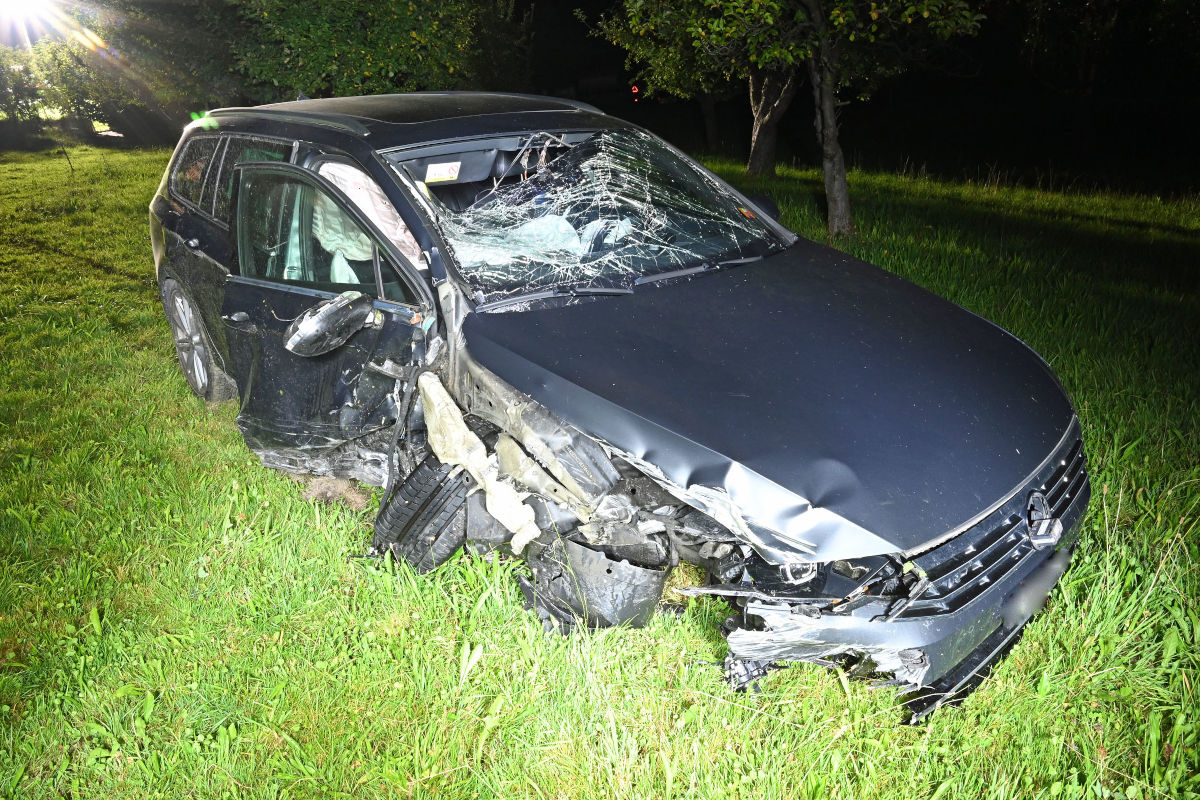 Dadurch wurde das Auto nach links abgewiesen, überquerte die Strasse und kam auf der linksseitigen Wiese zum Stillstand. Ein Mitfahrer erlitt beim Unfall erhebliche Verletzungen, während die Autofahrerin und ein weiterer Mitfahrer sich leicht verletzten.