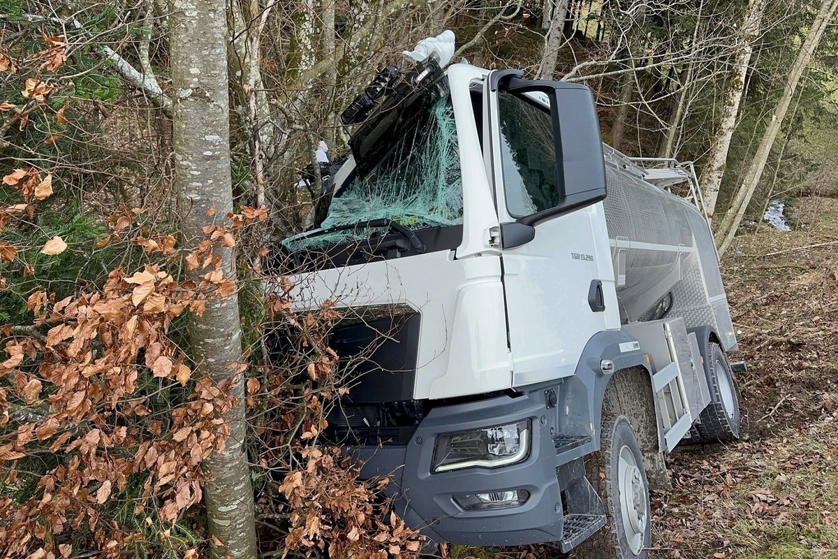 Ein 28-jähriger Mann fuhr kurz nach 09.15 Uhr mit einem Milchtransporter von Wald/AR in Richtung Oberegg. Nach einer Linkskurve, im Bereich Erbschrut, geriet der Lenker mit seinem Gefährt rechts über den Strassenrand hinaus. In der Folge befuhr er ein abschüssiges Wiesenbord, prallte gegen einen Baum und kam rund sechs Meter unterhalb der Strasse zum Stillstand.