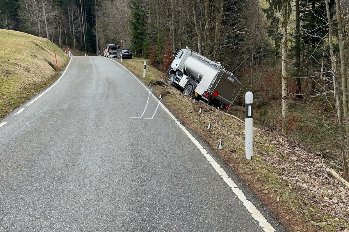 Unfall in Wald AR - Milchtransporter kommt von der Strasse ab