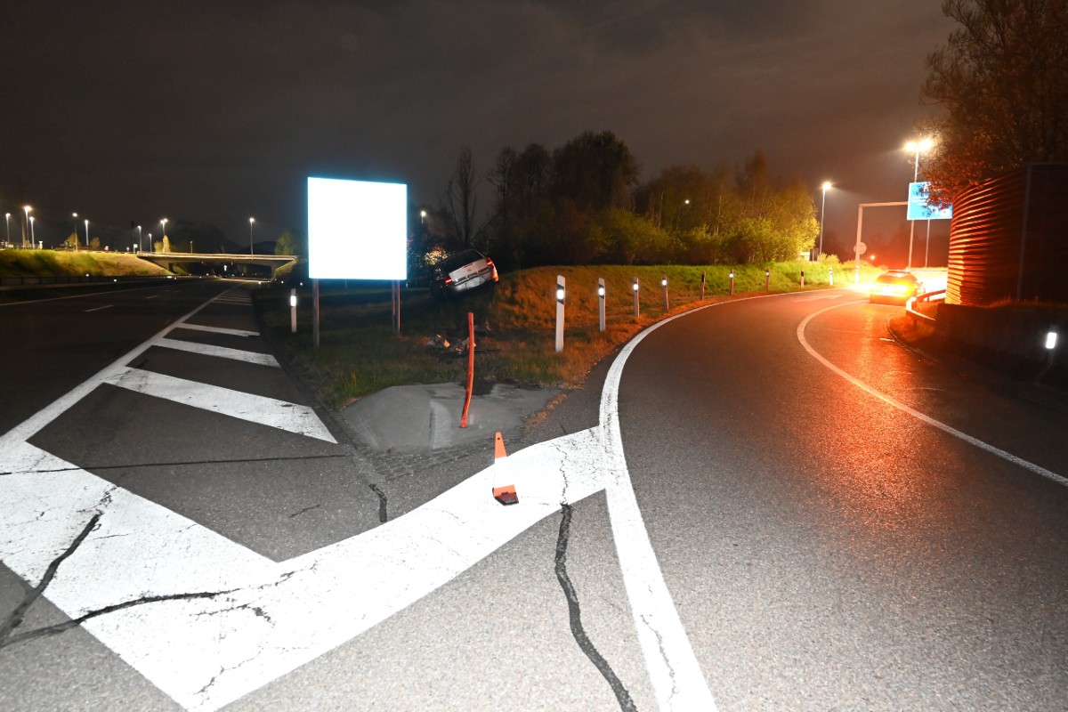 Am Mittwoch (13.04.2022), um 00:50 Uhr, ist das Auto eines 34-Jährigen mit einem Verkehrsteiler kollidiert. Der Fahrer wurde als fahrunfähig eingestuft. Ihm wurde der Führerausweis abgenommen.