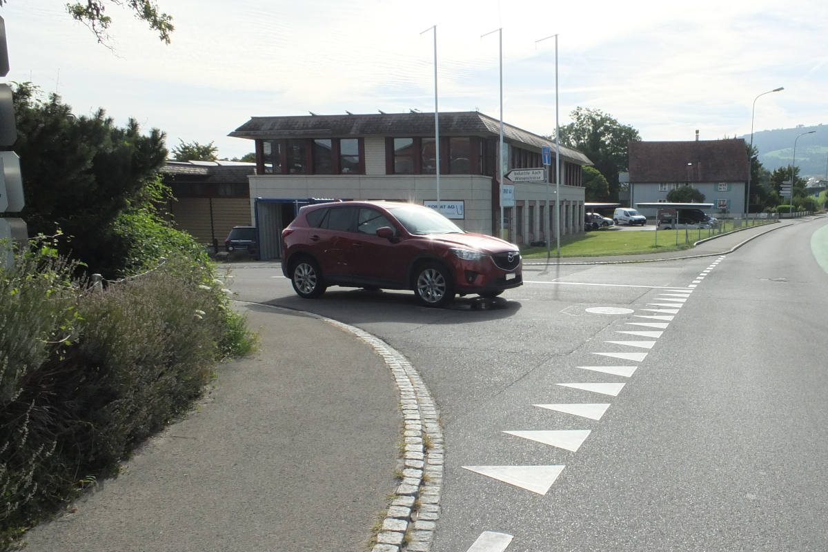 Eine 17-jährige Frau war mit ihrem Velo auf dem Trottoir der Goldacherstrasse von Tübach in Richtung Goldach unterwegs. Gleichzeitig fuhr ein 65-jähriger Mann mit seinem Auto auf der Wiesenstrasse in Richtung Verzweigung Goldacherstrasse. Folglich prallte die 17-Jährige bei der Einmündung mit ihrem Velo gegen die rechte Autofront.