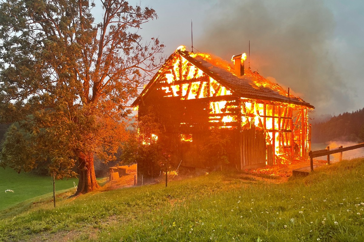 In Urnäsch AR kam es zu einem kompletten Stallbrand. (Bildquelle: Kantonspolizei Appenzell-Ausserrhoden)