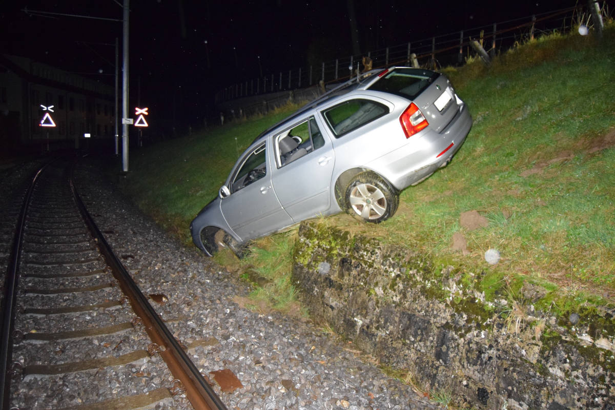 Auto stürzt in Gleisbett bei Urnäsch (Bildquelle: Kapo AR)