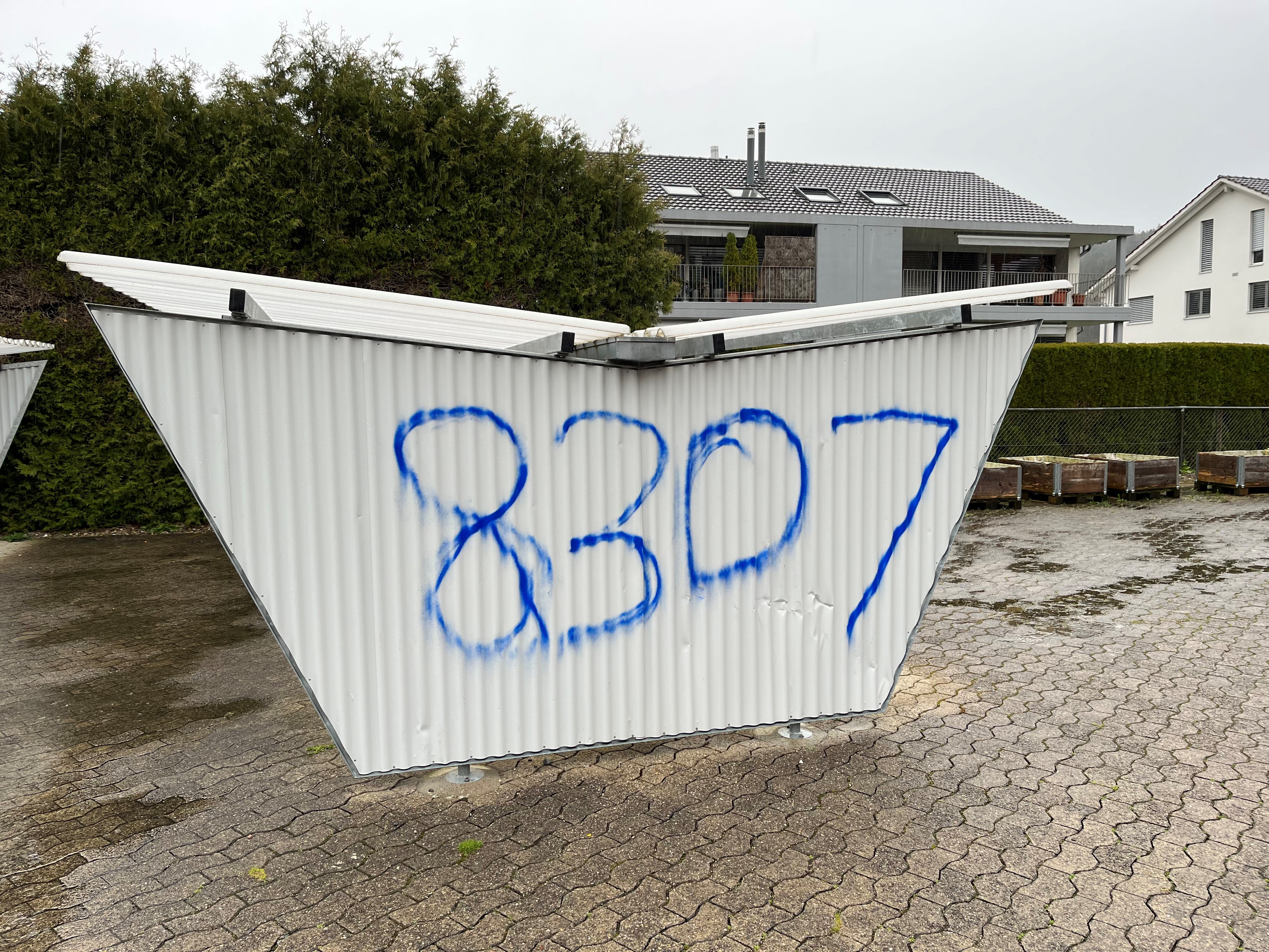Eine unbekannte Täterschaft besprühte zwischen Samstagabend und Sonntagmorgen mehrere Objekte, unter anderem Verkehrstafeln und Fassaden von privaten und öffentlichen Liegenschaften. Die Farbschmierereien enthielten in vielen Fällen den Schriftzug «FCZ» und «8307» in schwarzer und blauer Farbe.