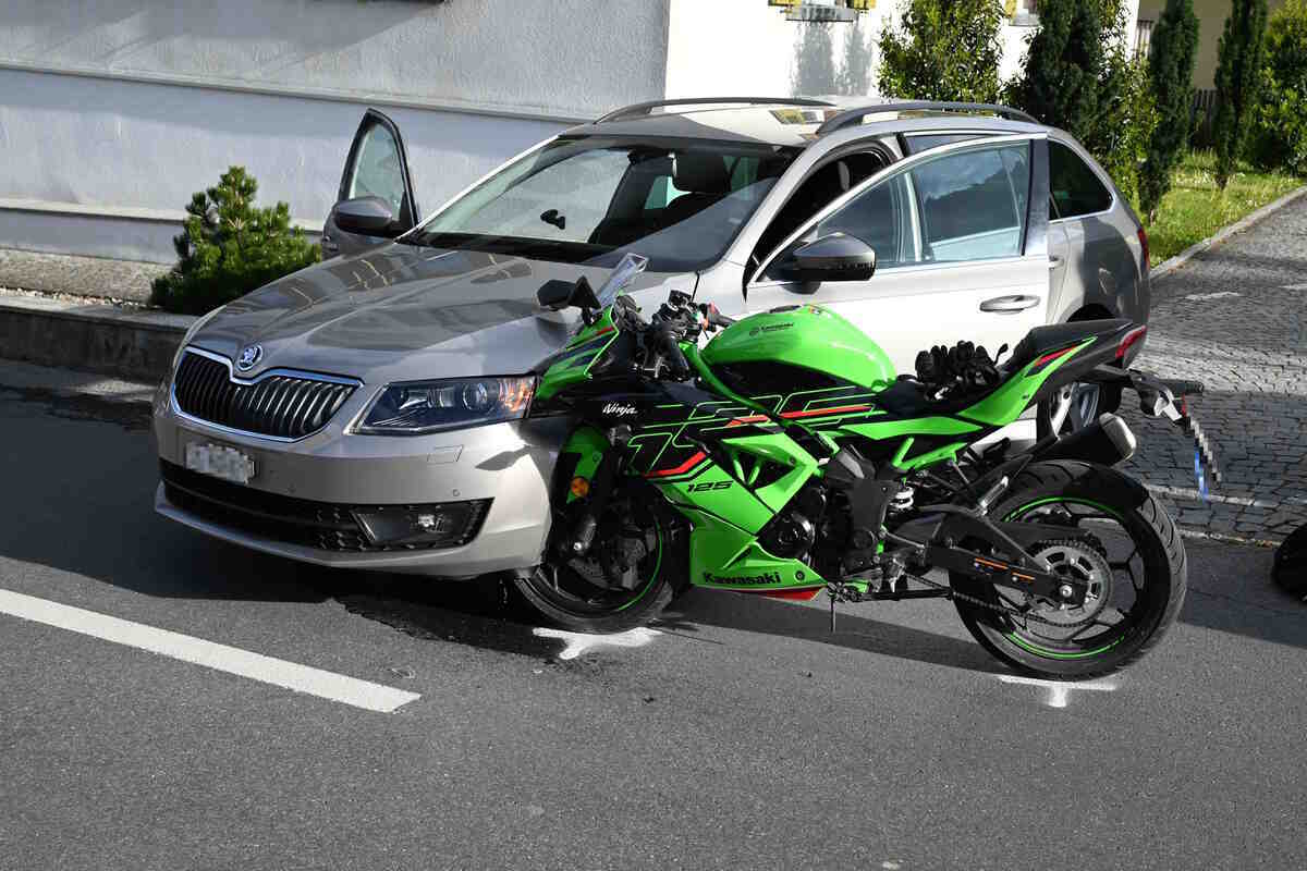 Am Samstag (27.04.2024), kurz nach 18 Uhr, kam es auf der Dorfstrasse im Kreuzungsbereich zu einem Unfall zwischen einem Auto und einem Motorrad. Die 17-jährige Motorradfahrerin wurde dabei leicht verletzt. Es entstand Sachschaden von rund 10'000 Franken.