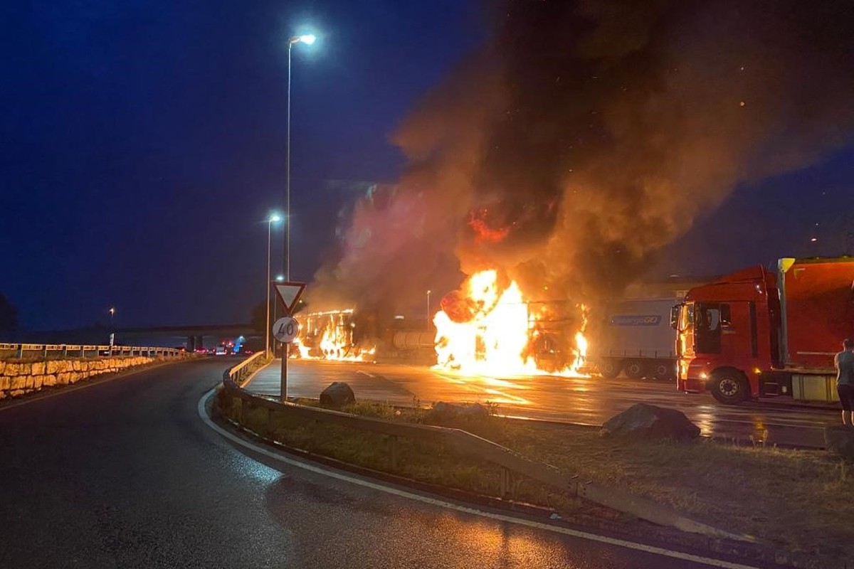 Vollbrand in Pratteln BL - Zwei Lastwagen brennen auf der Autobahnraststätte aus!