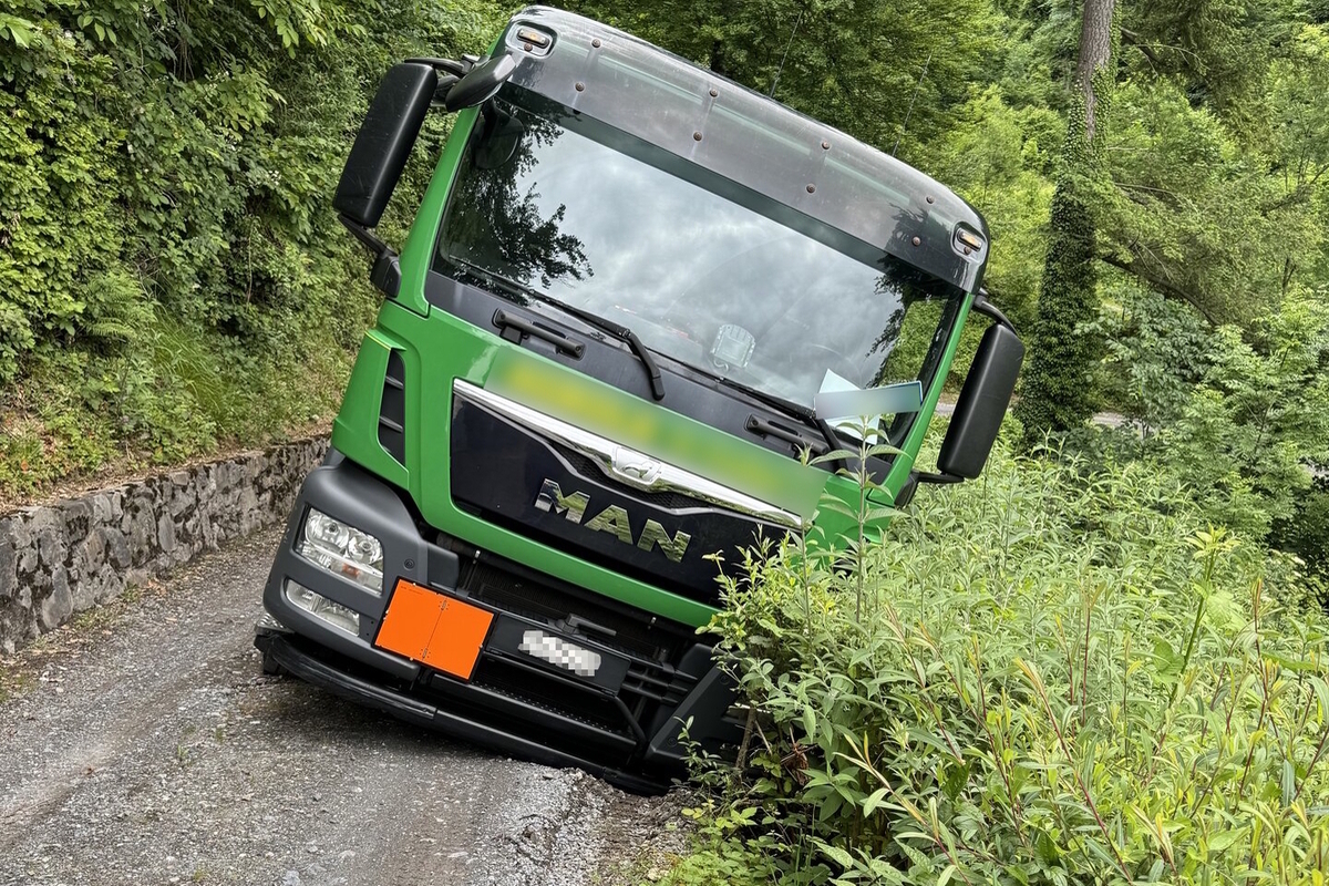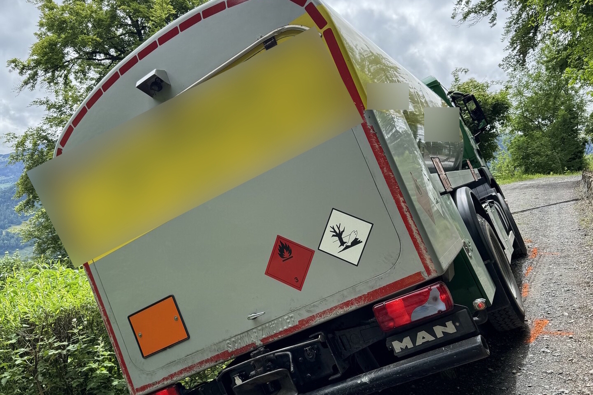 Der Lastwagen blieb stecken und drohte abzurutschen. Die ausgerückte Feuerwehr konnte den Lastwagen sichern und die Tankfüllung in ein anderes Fahrzeug umpumpen. Verletzt wurde niemand.