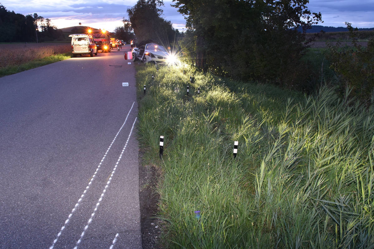 Kurz vor 18 Uhr fuhr ein Mann mit seinem Personenwagen auf der Mülibachstrasse Richtung Guntalingen. Ausgangs einer Linkskurve verlor er die Kontrolle über sein Fahrzeug und prallte seitwärts heftig gegen einen Baum. Der mutmassliche Unfallverursacher, ein 26-jähriger Portugiese, konnte kurze Zeit später in Unterstammheim von der Kantonspolizei Zürich angetroffen und kontrolliert werden. Er war zu Fuss vom Unfallort geflüchtet und trug eine geringe Menge Betäubungsmittel auf sich. Der Mann wies Verletzungen auf und musste mit einem Rettungsfahrzeug in ein Spital gebracht werden. Er ist nicht im Besitz eines gültigen schweizerischen Führerausweises und wurde wegen des Verdachts auf ein Raserdelikt verhaftet. Der genaue Unfallhergang wird durch die Kantonspolizei Zürich und die Staatsanwaltschaft untersucht. Der zuständige Staatsanwalt ordnete eine Blut- und Urinentnahme an. Wegen des Unfalls blieb die Mülibachstrasse bis etwa um 21 Uhr gesperrt.