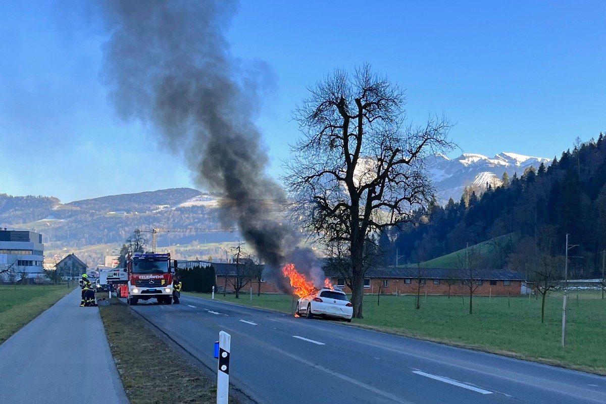 Gestern Nachmittag geriet auf der Kantonsstrasse in Schachen ein Personenwagen in Brand. Das Fahrzeug erlitt Totalschaden. Verletzt wurde niemand. Die Brandursache ist Gegenstand der laufenden Ermittlungen.