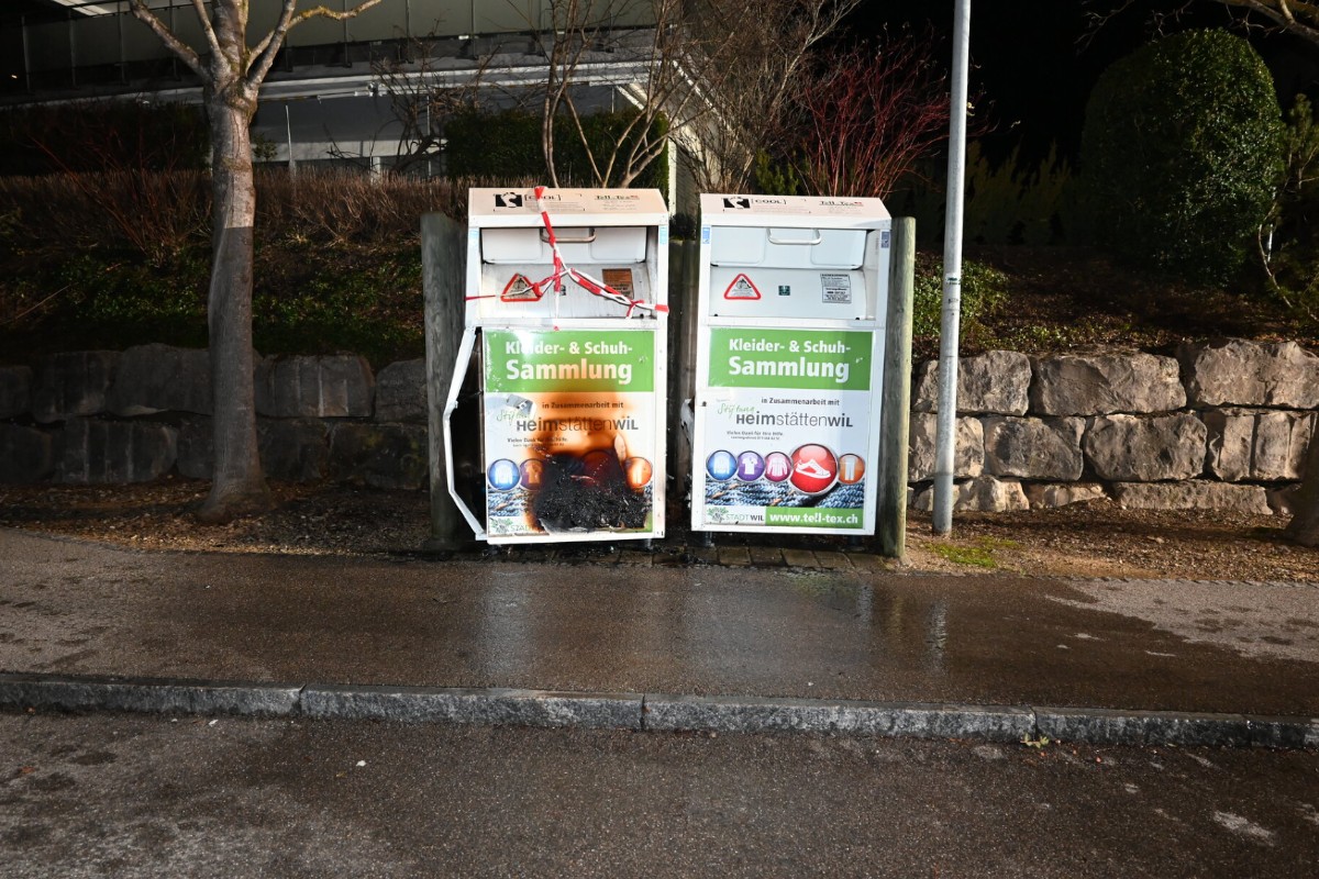In Wil SG brannte es in einem Altkleider-Container. (Bildquelle: Kantonspolizei St. Gallen)