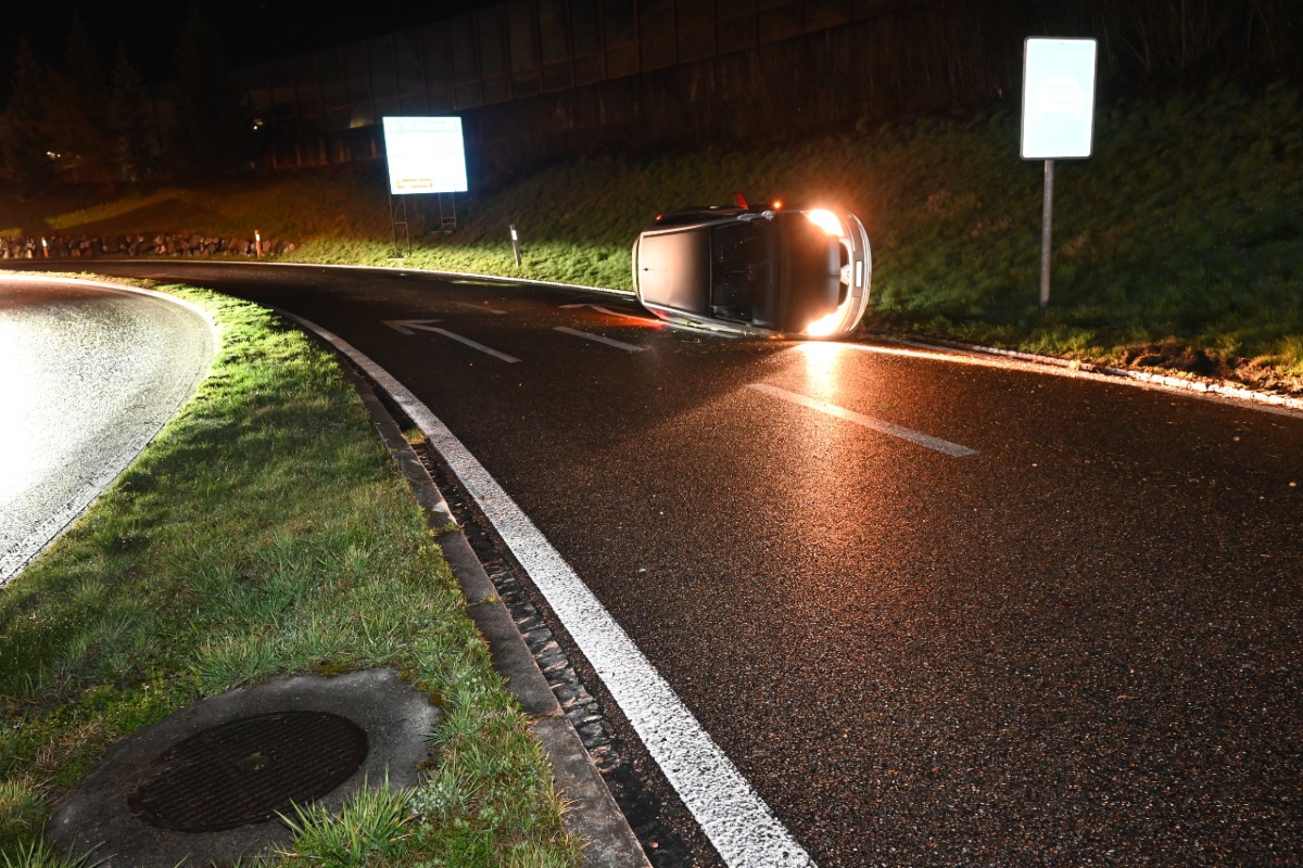 Aufgrund der Steigung kippte sein Auto und kam auf der Seite liegend zum Stillstand. Der 41-Jährige konnte sich in der Folge selbstständig aus seinem Auto befreien. Die ausgerückte Patrouille der Kantonspolizei St.Gallen führte mit dem Mann eine Atemalkoholmessung durch, welche positiv ausfiel.