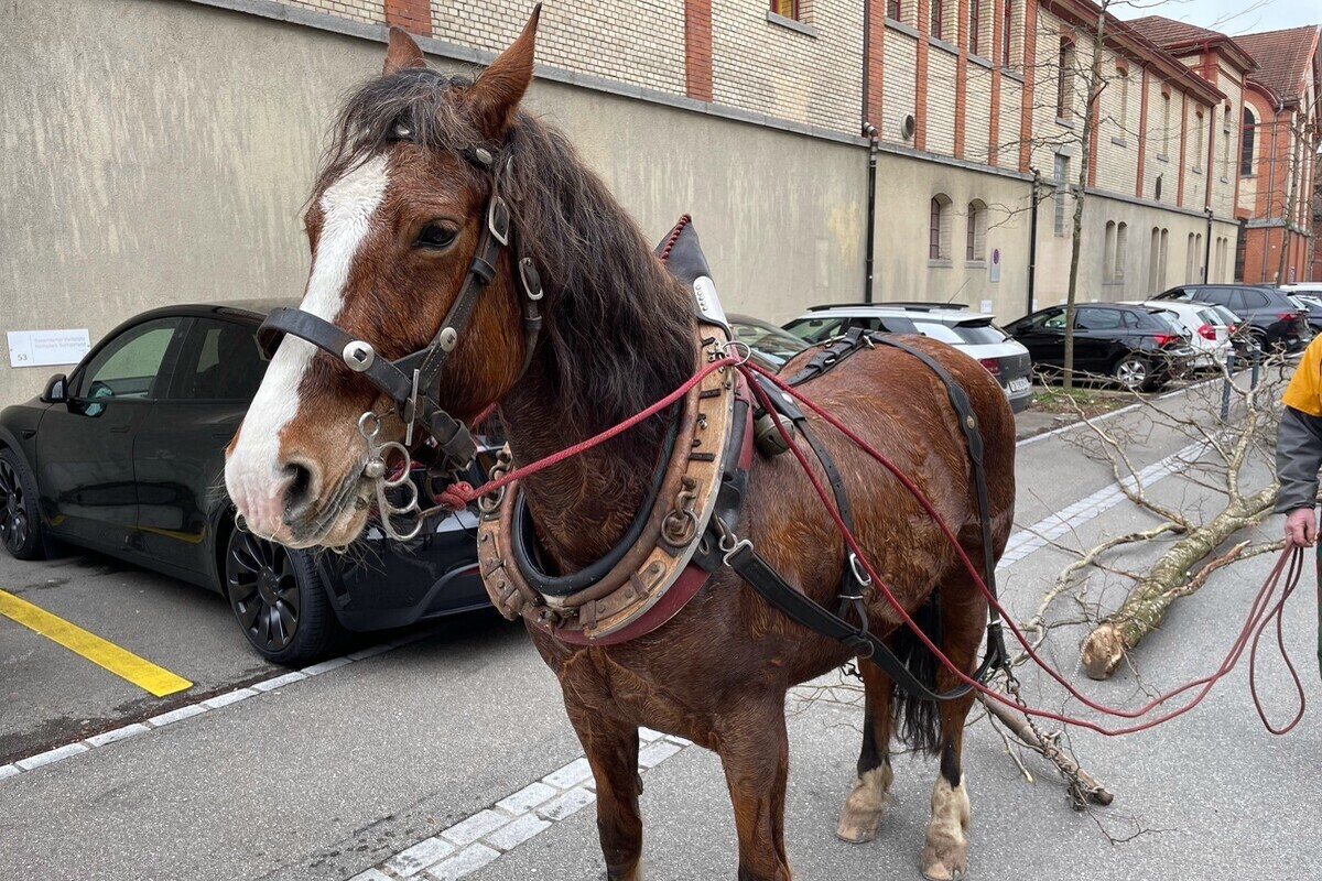 Winterthur ZH - Entlaufenes Pferd zieht 10 Meter langen Baum durch die Stadt