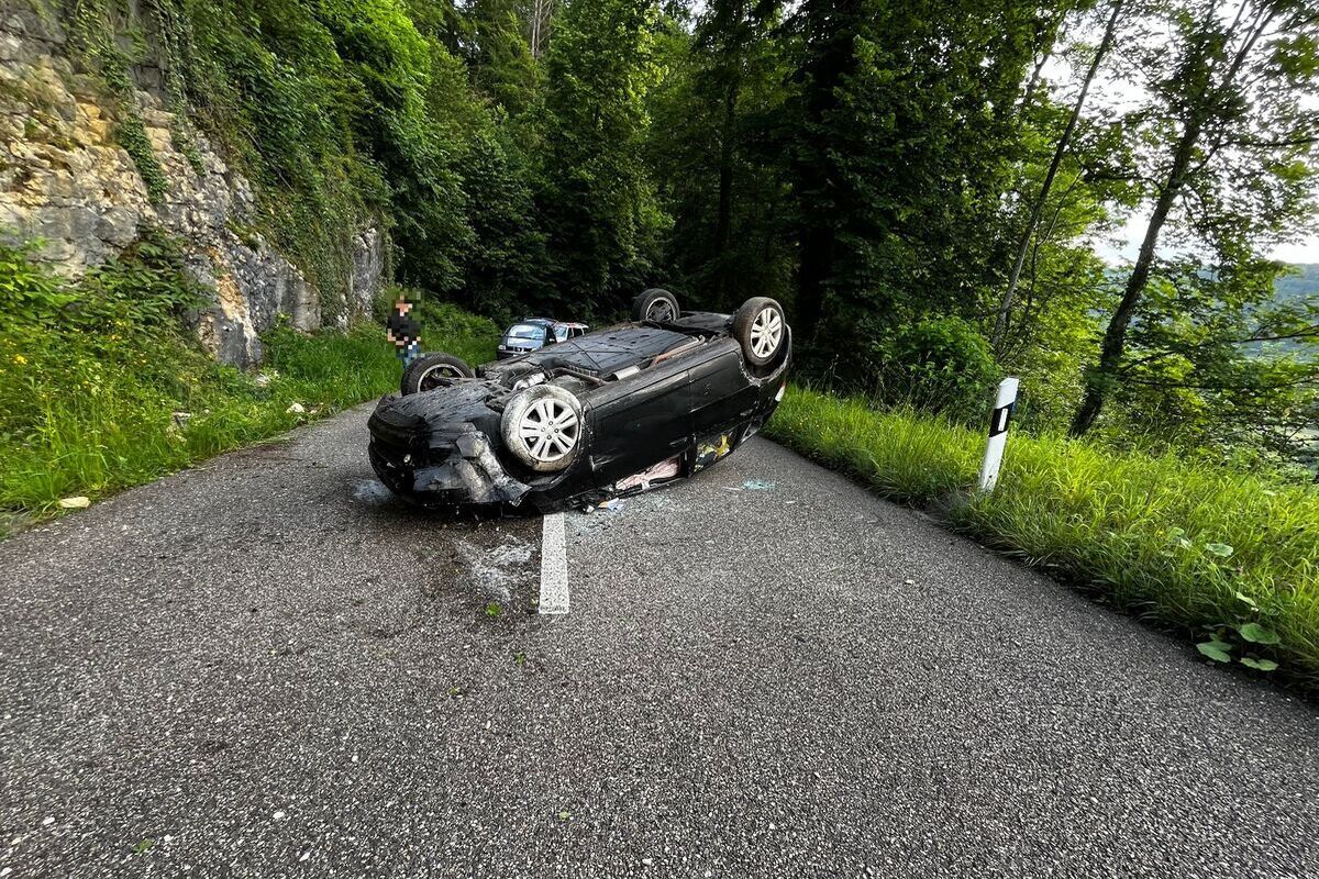 Durch die Wucht des Aufpralls wurde der Personenwagen auf die Strasse zurückgeschleudert und überschlug sich dabei. Schlussendlich kam das Fahrzeug auf dem Dach liegend zum Stillstand. Der Fahrzeuglenker konnte sein Auto selbständig verlassen, wurde bei dem Unfall aber leicht verletzt, weshalb er durch die Sanität ins Spital gebracht wurde.