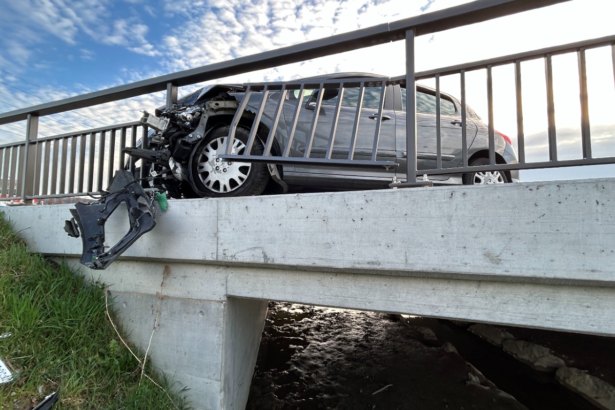 worauf sie mit dem Brückengeländer kollidierte. Durch die