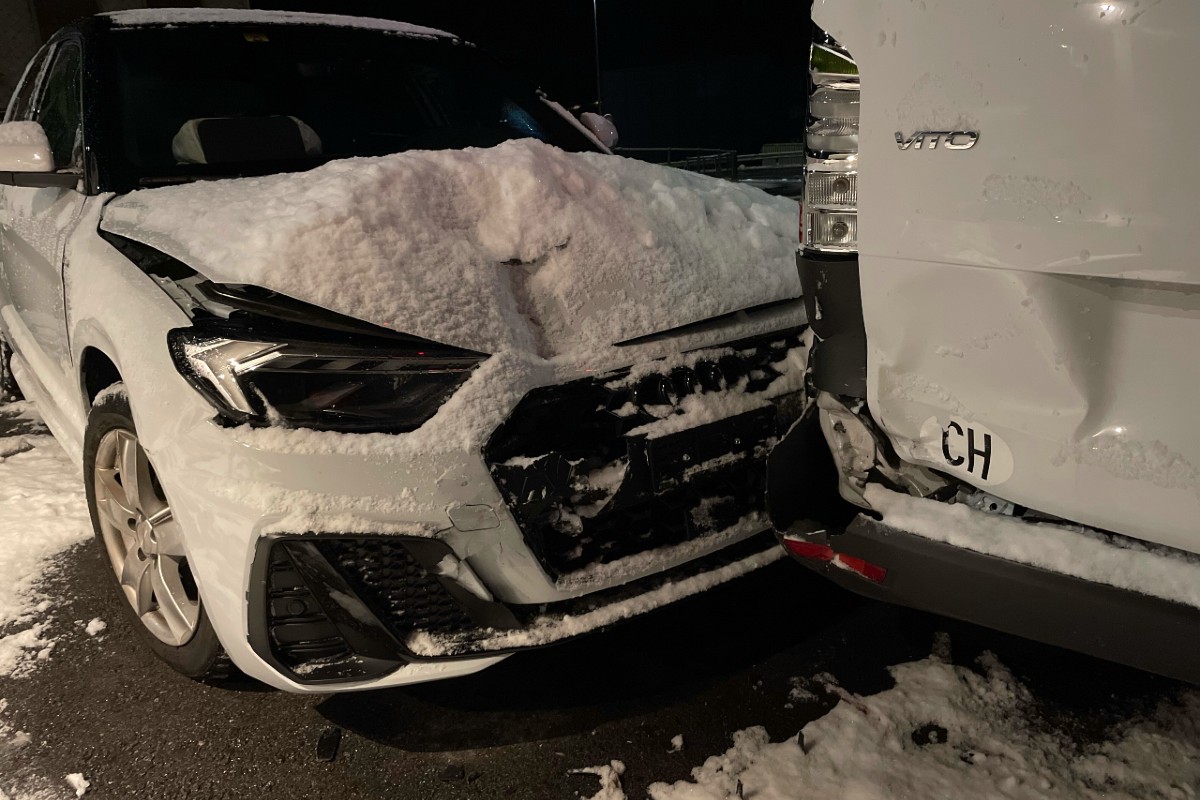 Die junge Frau rutschte mit Ihrem Audi in zwei parkierte Autos. (Bildquelle: KAPO AR)