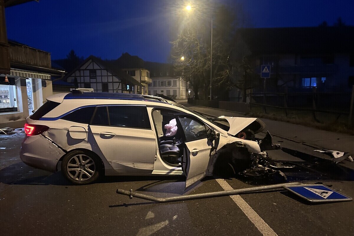 In der Folge kollidierte das Fahrzeug mit einem Strassenschild, fuhr in eine Hausmauer und prallte anschliessend gegen die Hausmauer der Liegenschaft an der Hauptstrasse 56. Danach kam das Auto rund 20 Meter weiter vorne auf der Strasse zum Stillstand. Der Autofahrer wurde beim Unfall verletzt.