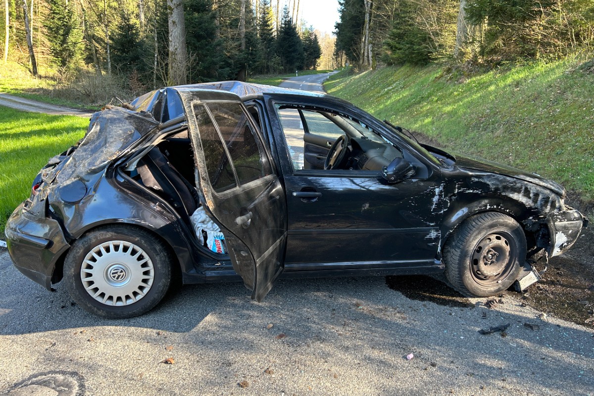 Ein VW Golf musste einem entgegenkommenden Lastwagen so weit ausweichen, dass der VW von der Strasse abkam und sich überschlug. Beim Unfall wurde