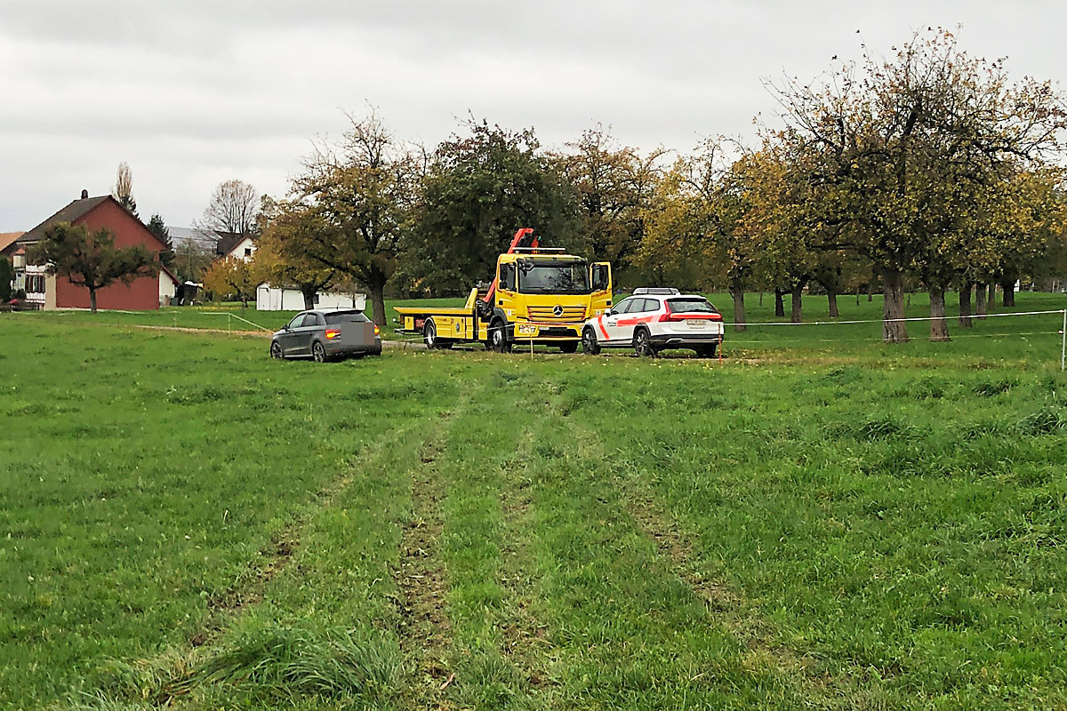 Nach rund 200 Metern im Wiesland in Happerswil kam das Fahrzeug zum Stillstand (Bildquelle: Kantonspolizei Thurgau)